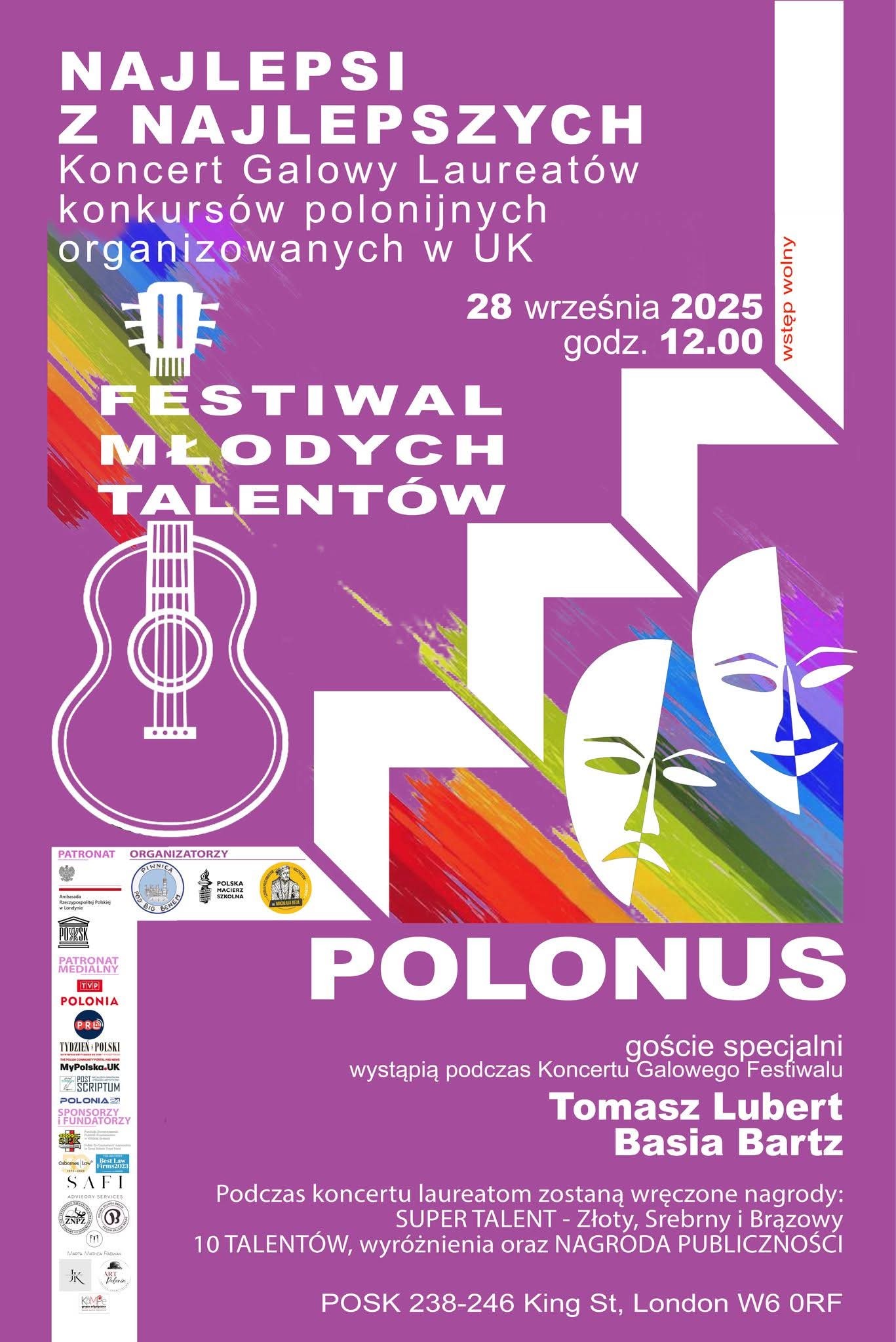 Zapraszamy na IV edycję Festiwalu Młodych Talentów „Polonus” 2025 organizowanego przez Grupę Artystyczną Piwnica Pod Big Benem, Polską Macierz Szkolną oraz Szkołę Przedmiotów Ojczystych im. Mikołaja Reja.