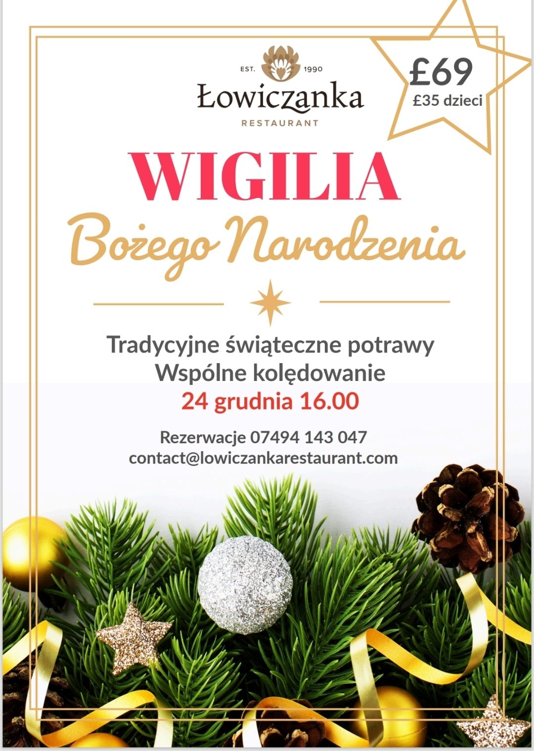 Restauracja Łowiczanka zaprasza na Wigilię 2025. Więcej informacji pod numerem 07494 143… |